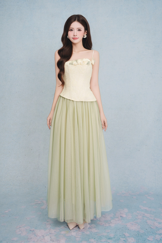 Amie - Cream corset midi dress