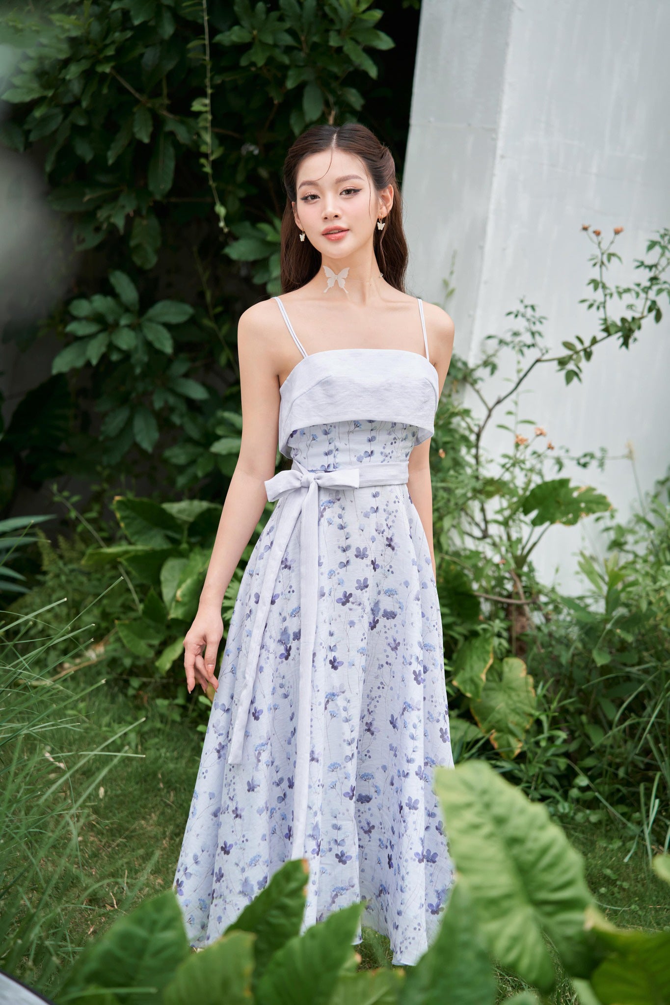 Flora - elegant blue printed floral midi dress