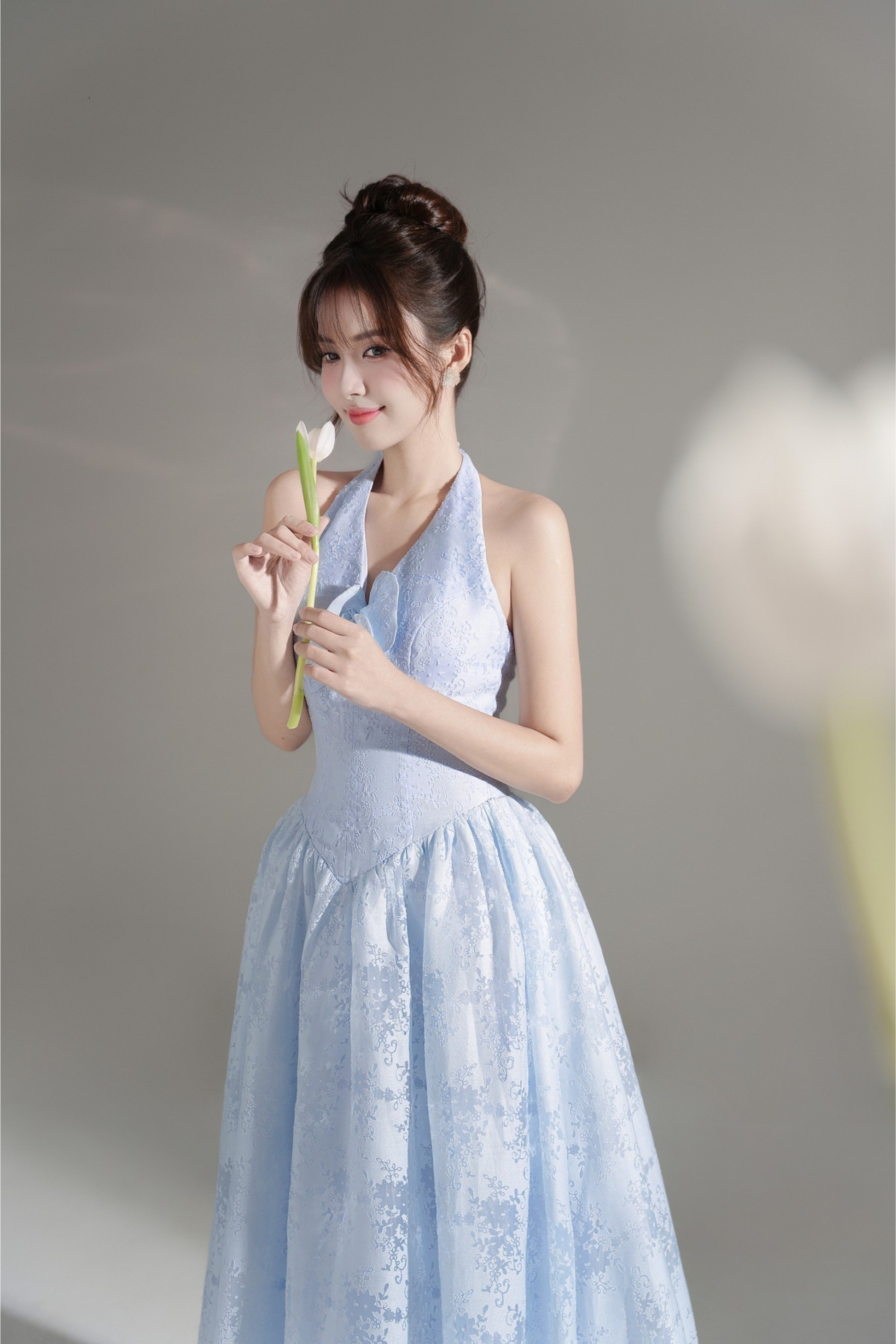 The Maris Cinderella Dress is a stunning halter V-neck design flatters your silhouette while offering a graceful, feminine aesthetic perfect for special occasions, evening events, or when you want to feel absolutely radiant.